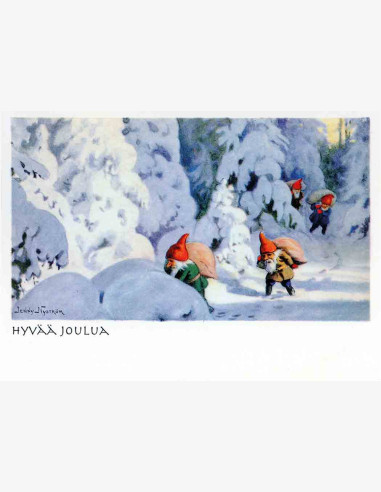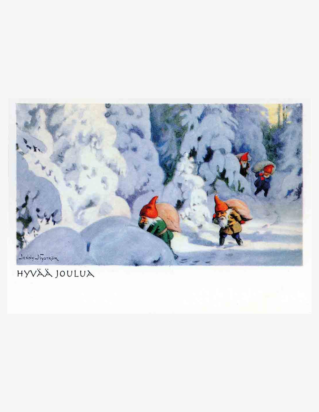 Jenny Nyström (1854-1946) joulukortti. Pohjoismaisen korttikuvituksen edelläkävijä.