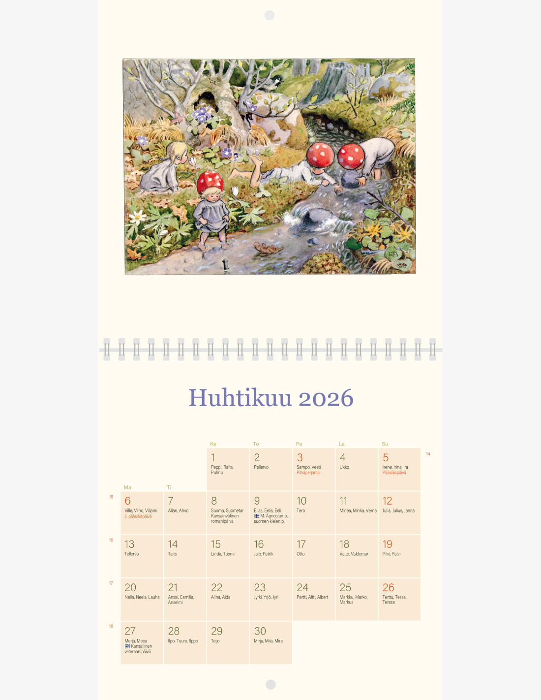 Elsa Beskow -seinäkalenteri vuodelle 2026.