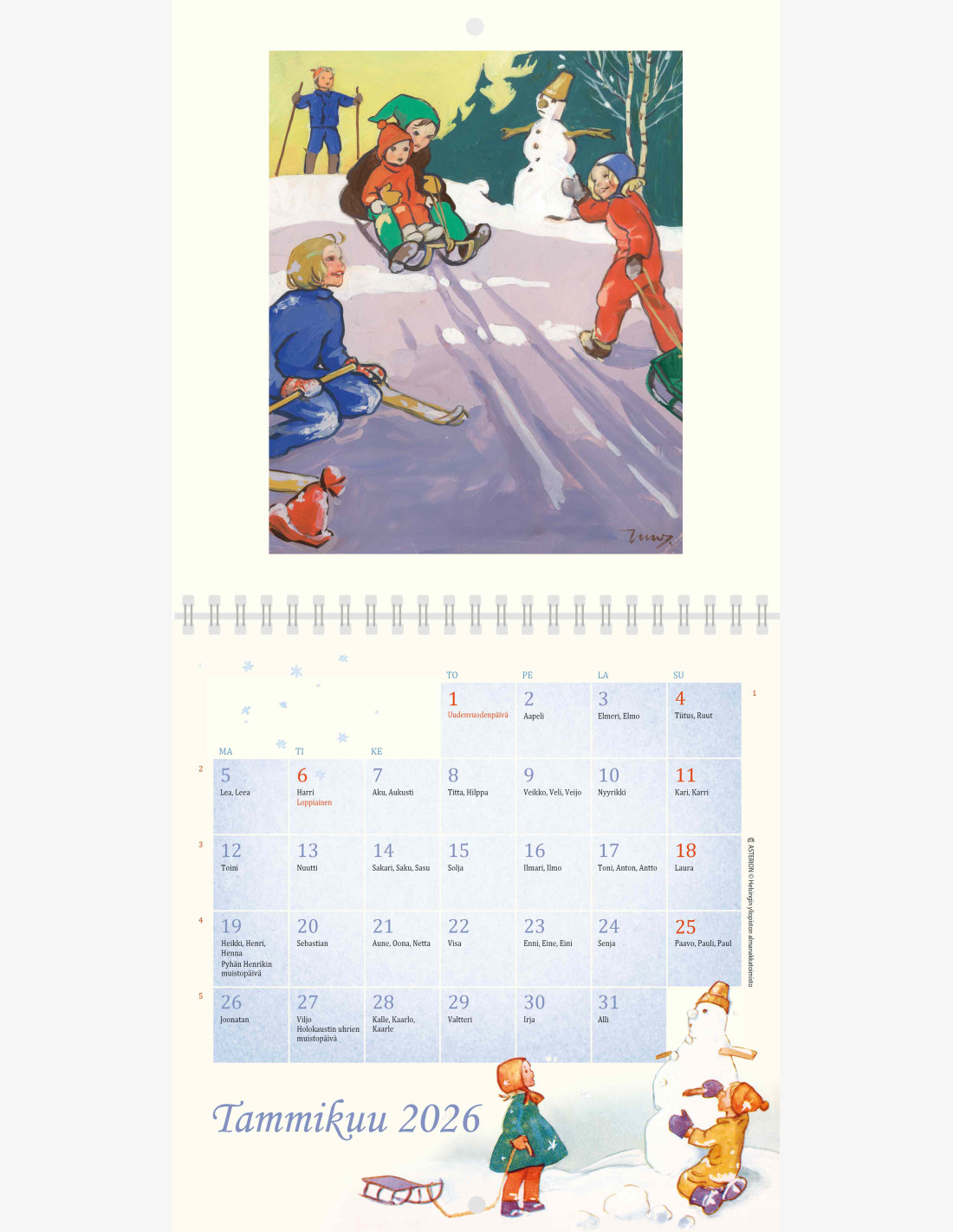 Martta Wendelin -seinäkalenteri vuodelle 2026.