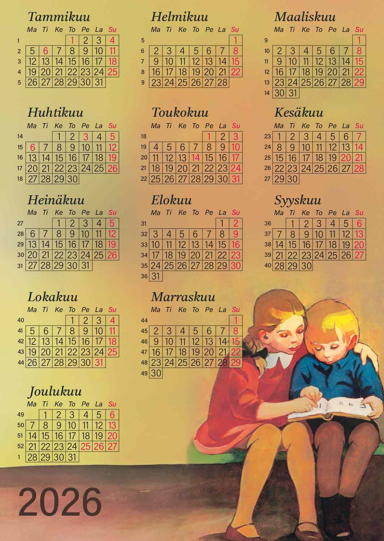 Elsa Beskow -seinäkalenteri 2026