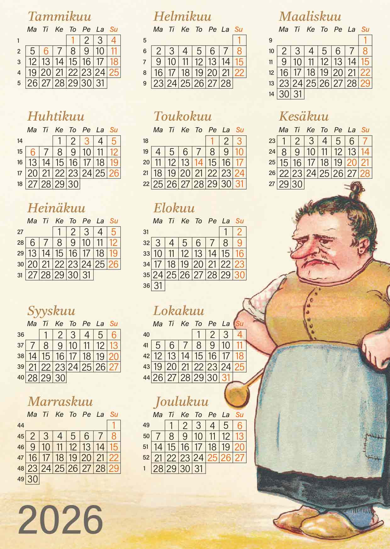 Emäntä -kalenteripostikortti 2026