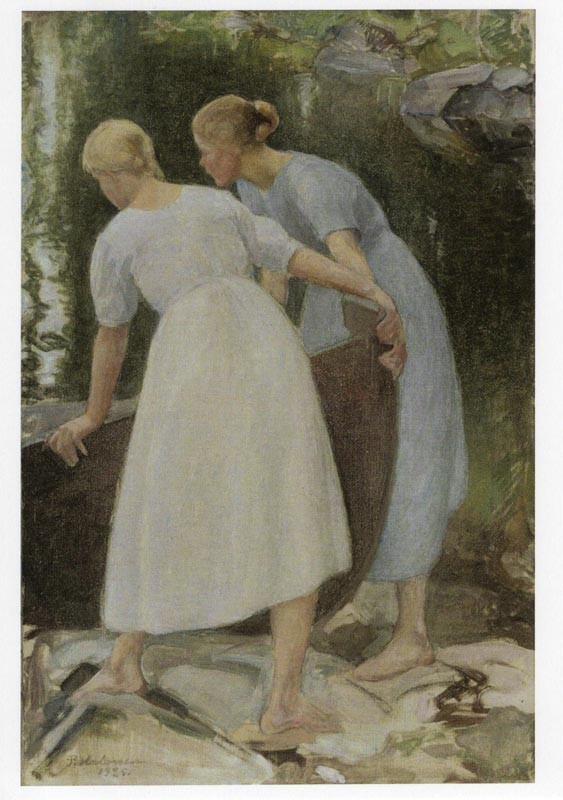 Pekka Halonen - Tyttöjä työntämässä venettä vesille