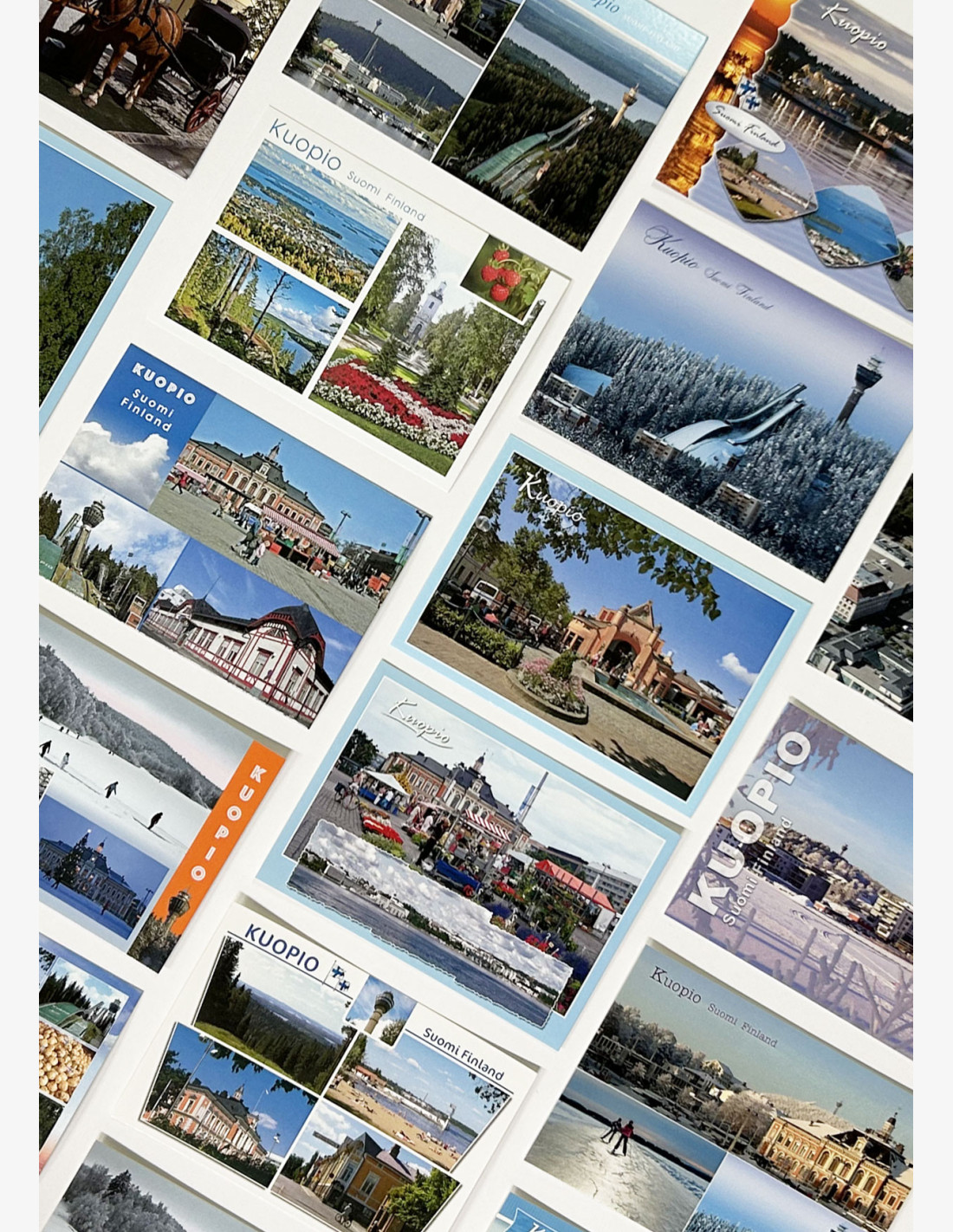 Kuopio-korttilajitelma sisältää 36 kpl Kuultokuvan valikoimasta poimittua Kuopio-aiheista postikorttia. Jokaista kuva-aihetta on 2 kpl, eli setissä on 18 kpl erilaista kuva-aihetta.