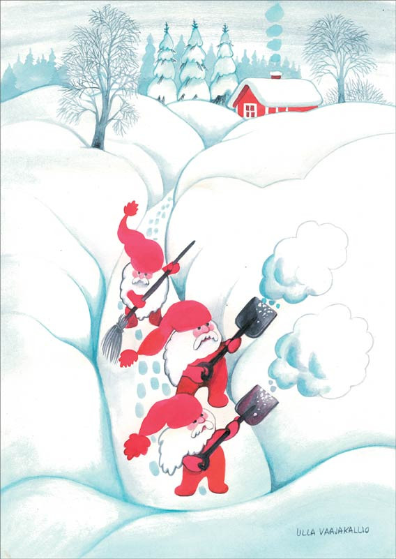 Matti Kapanen -joulukortti - Tonttu, hömötiaiset ja lapintiainen