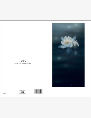 Tämä kortti on kaksiosainen sisältä painamaton kortti, joten voit kirjoittaa korttiin haluamasi tervehdyksen. Kortti on hieman normaalia postikorttia kookkaampi, ja sisältää kirjekuoren kortin postitusta varten.
