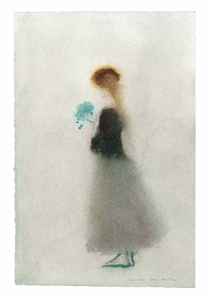 Nostalgia Tyttö ja kukkakimppu