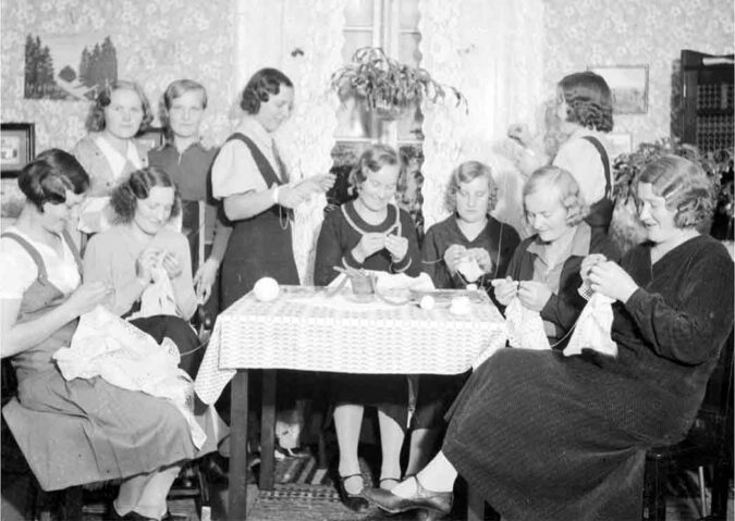 Naisia kokoontuneena virkkaamaan, 1934