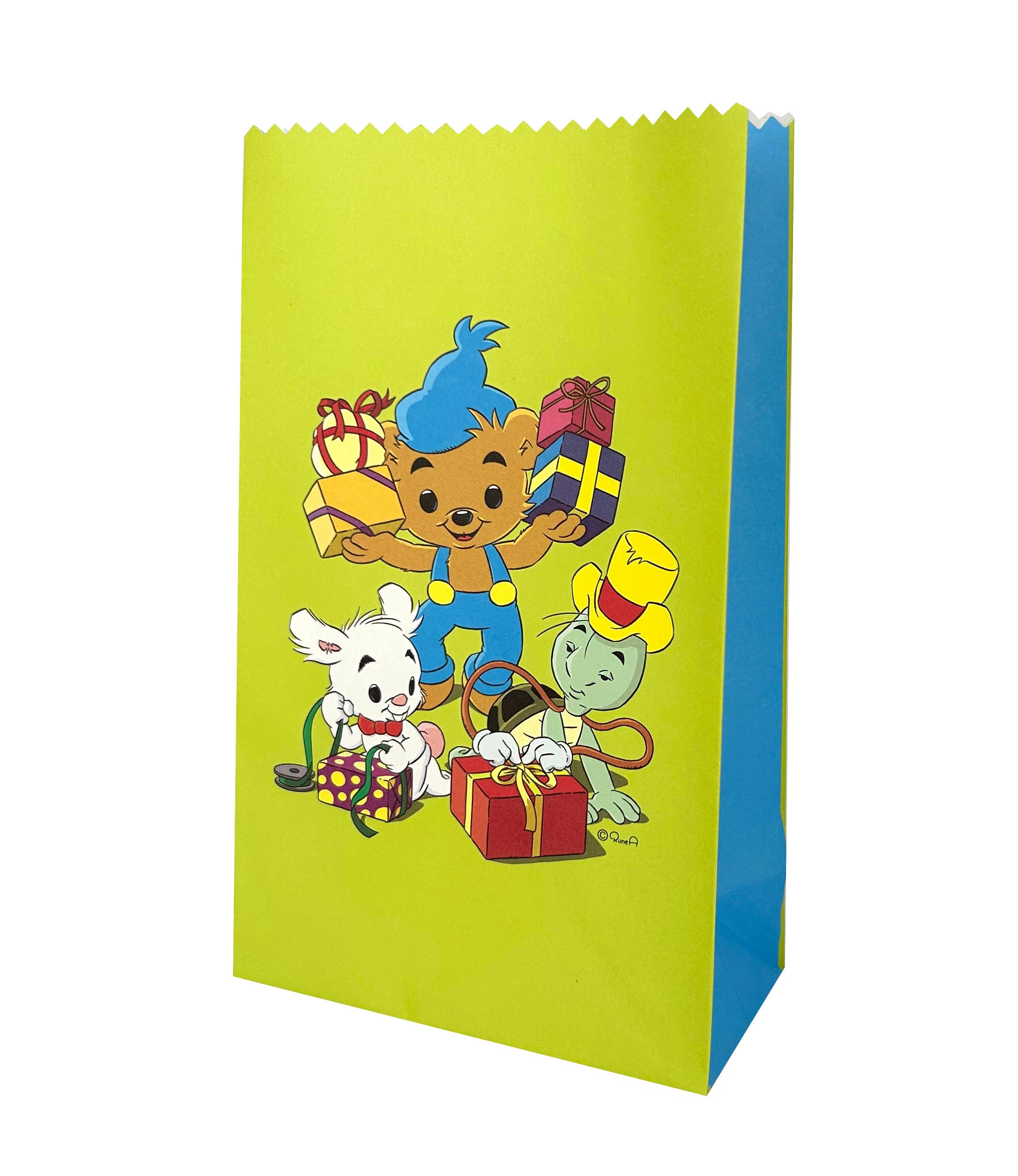 Paperinen karkkipussi, jossa kuvituksena Rune Andréassonin rakastettu Bamse, eli Maailman Vahvin Nalle. Pussi soveltuu esimerkiksi karkeille tai lahjapussiksi. Karkkipussista kahta eri kuva-aihetta, yhteensä 8 kpl. Sopii yhteen muiden Bamse juhlatuotteiden kanssa. Koko 12 x 20 cm.