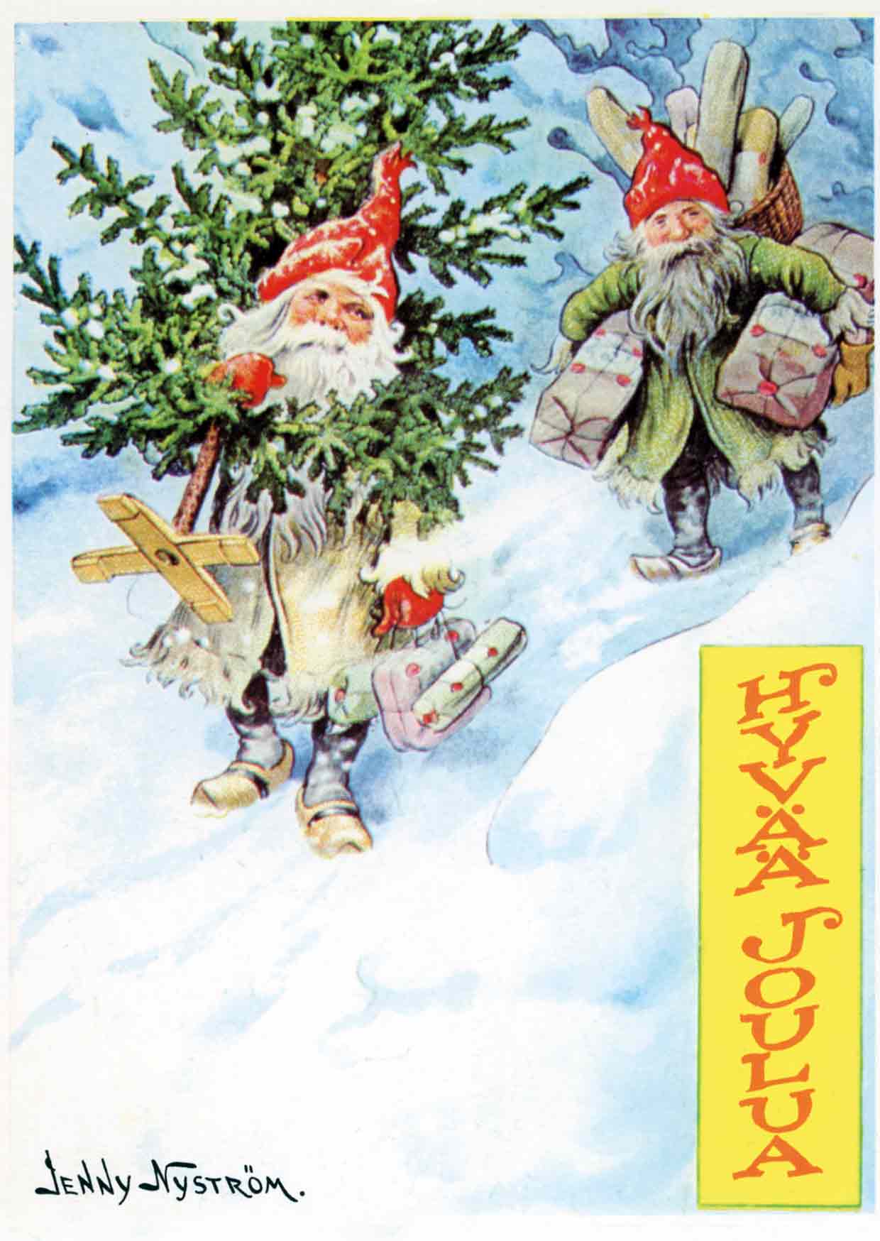 Jenny Nyström (1854-1946) joulukortti. Pohjoismaisen korttikuvituksen edelläkävijä.