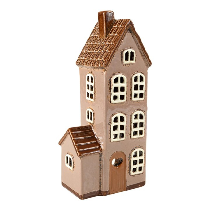 Tanskalainen Det Gamle Apotek keraaminen talolyhty. Valmistettu korkealaatuisesta keramiikasta. Talon sisälle voi laittaa palamaan tuikkukynttilän tai led-valosarjan.