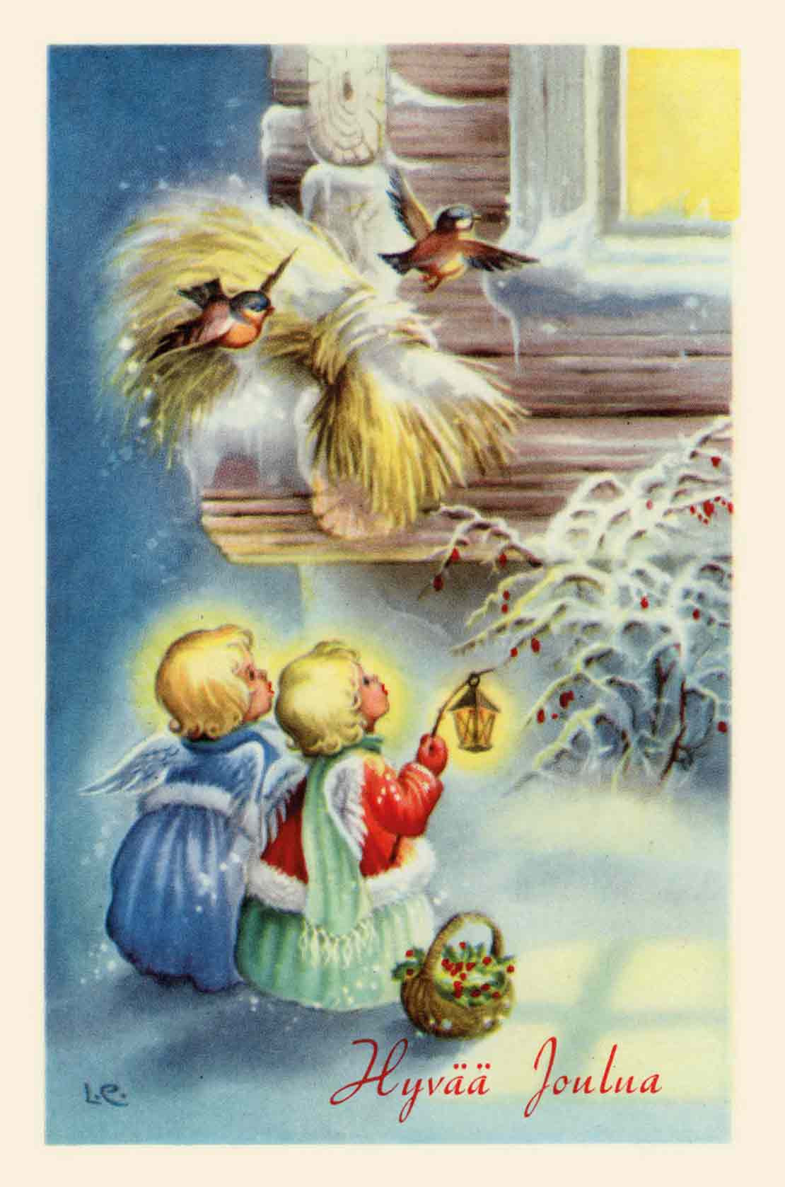 Lars Carlssonin joulukortti, näköispainos viime vuosisadan alun postikortista. Kortin taustapuolella viivoitus osoitteelle. Tuote on valmistettu Suomessa korkealaatuisesta materiaalista.