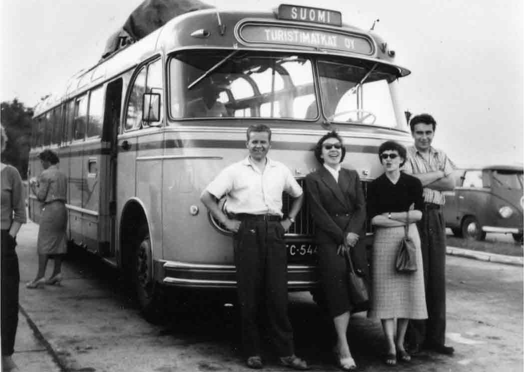 Linja-auton matkustajia Pariisin matkalla, 1958