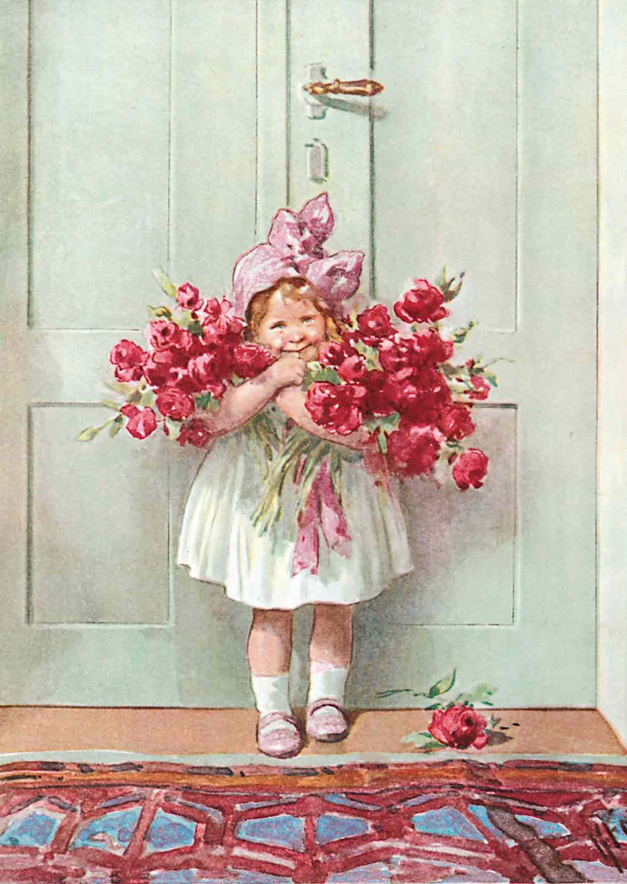 Nostalgia Tyttö ja kukkakimppu