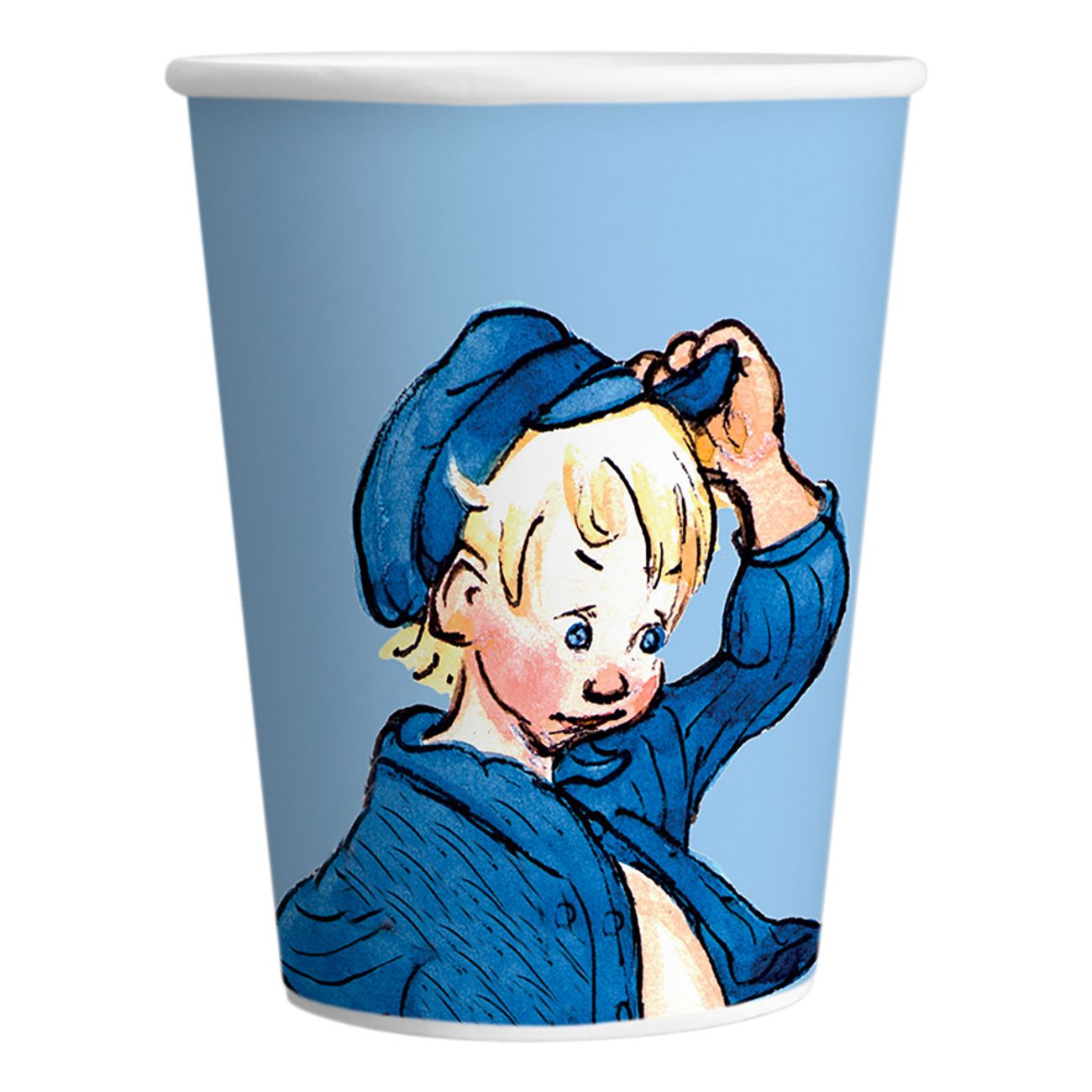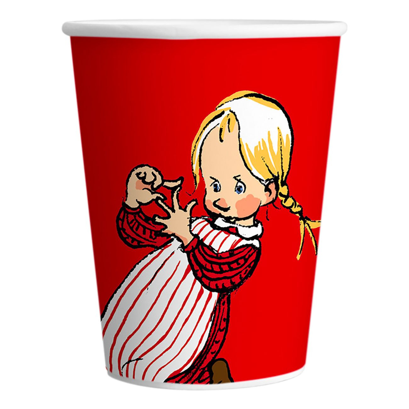 Pahvimuki, jossa kuvituksena Astrid Lindgrenin Vaahteramäen Eemeli.